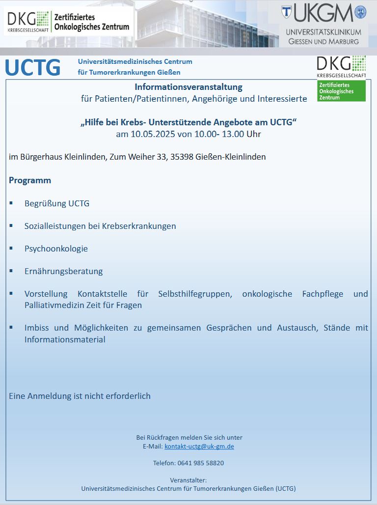 Wir bieten an den Standorten im UKGM Gießen, Bad Nauheim und im Evangelischen Krankenhaus Mittelhessen Gießen Sprechstunden an, bei denen sich jeder Erkrankter selbst vorstellen kann. Genaue Termine können mit dem jeweiligen Sekretariat vereinbart werden.